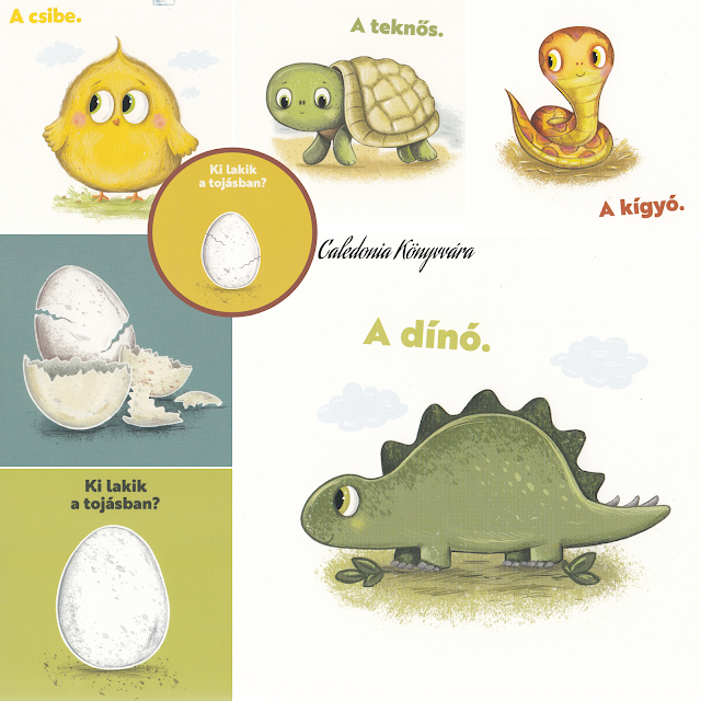 Mennyi és mennyiféle állat kelhet ki tojásból? Van itt teknős, kígyó, hangyászsün, kacsacsőrű emlős és még rejtett meglepetés is... A lapozó egy ütős kis csattanóval zárul, ami mosolyt csal az ember arcára, s amit természetesen nem fogok lelőni, maradjon rejtély számotokra mindaddig, míg fel nem csapjátok a kötetet! ;)